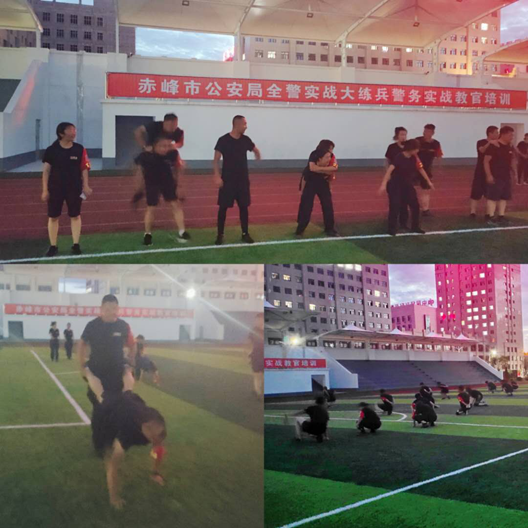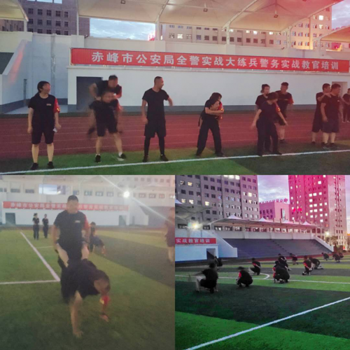 赤峰市公安局教育培训支队的训练场上,参加全警实战大练兵的受训教官们,挥汗如雨,杀声震天。脚磨出了泡,脸晒曝了皮,斗志昂扬。