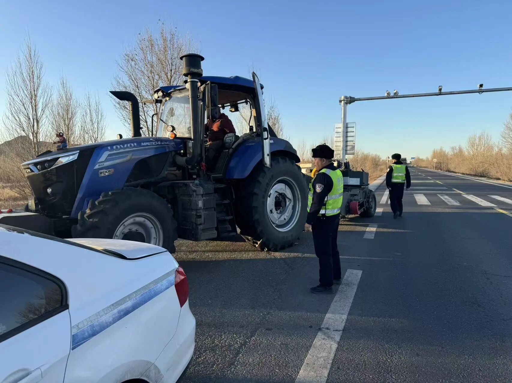 针对农村牧区道路视线条件有限、农用车夜间行驶辨识度低这一突出安全痛点,大队民辅警主动下沉一线,深入各苏木乡镇的村屯院落、田间地头与乡村主干道,对未粘贴反光标识、标识老化破损的拖拉机、三轮车等各类农用车辆开展“拉网式”排查。