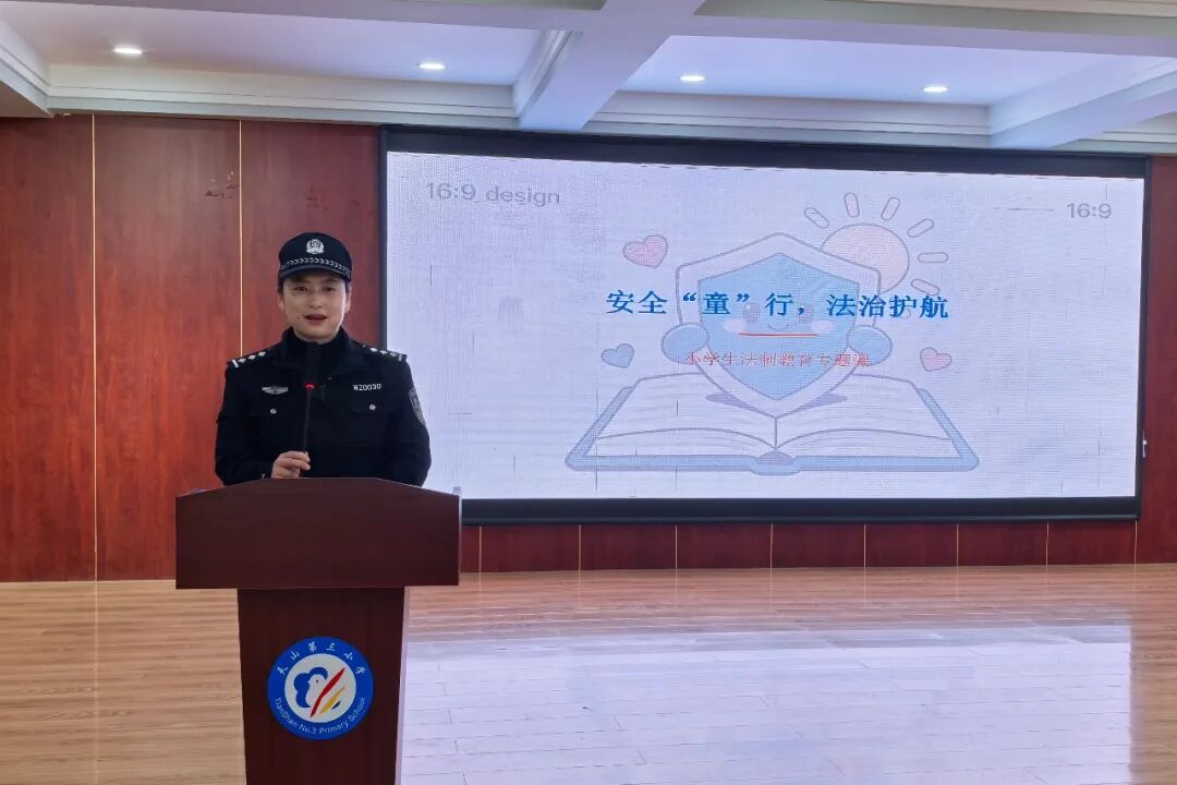 为进一步增强小学生法治意识和安全防范能力,筑牢校园安全防线,3月19日,阿鲁科尔沁旗公安局天山城区派出所组织民警深入辖区天山第三小学,开展以“安全‘童’行 法治护航”为主题的宣传教育活动,为全校师生送上一堂生动实用的法治安全课。