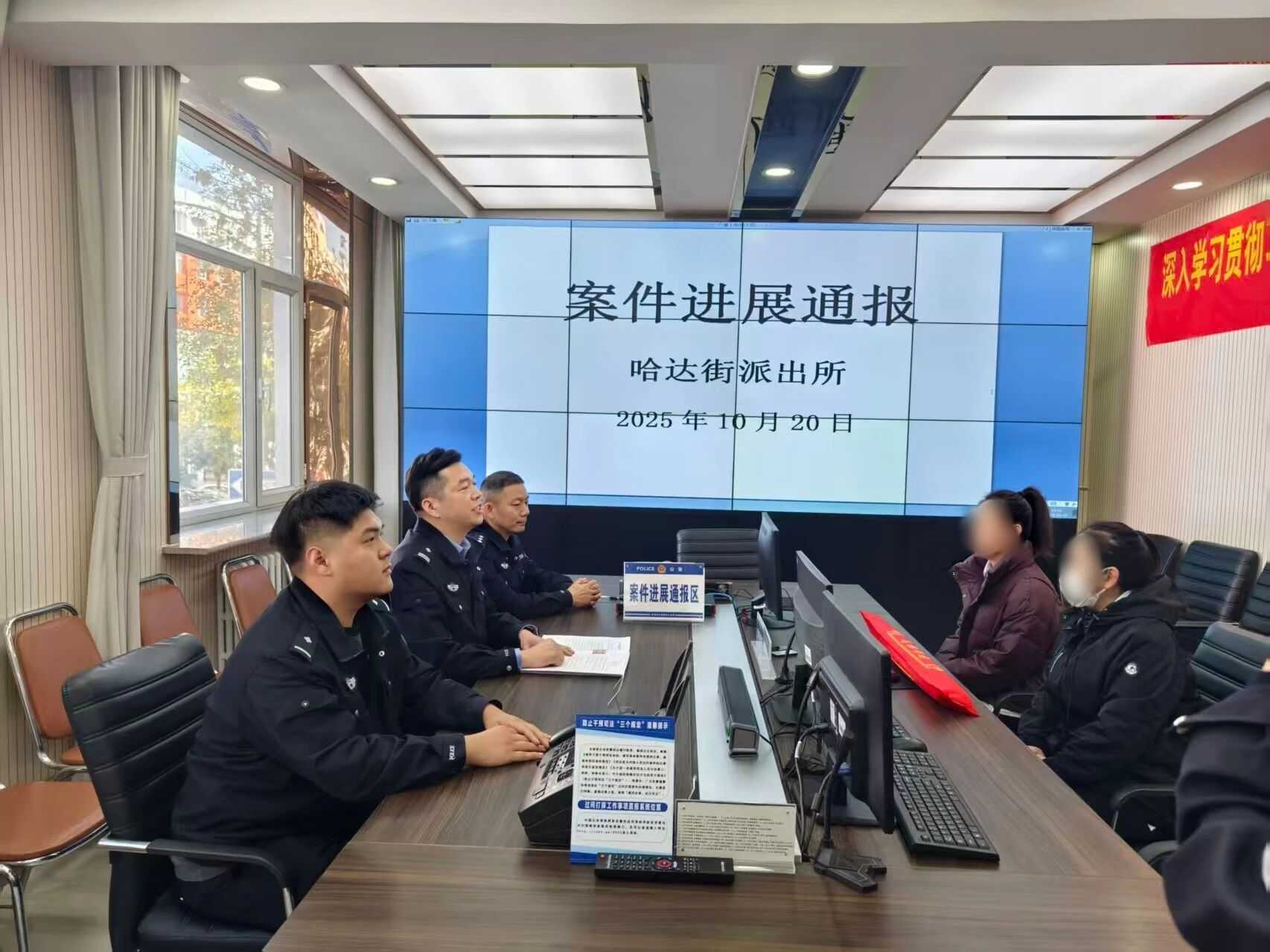 此案的高效侦破,是分局推行“案件进展通报”制度落地见效的鲜活注脚。该制度推行以来,哈达街派出所始终坚持打破办案神秘感、提升执法透明度,通过“关键节点必通报、复杂案情细解读、风险隐患早提示”的工作模式,让企业群众清晰感知公安履职全过程。