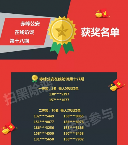 访谈结束后,王辉副县长从近期参与扫黑除恶有奖答题的网友中抽取了32名幸运网友获得微信红包大奖。