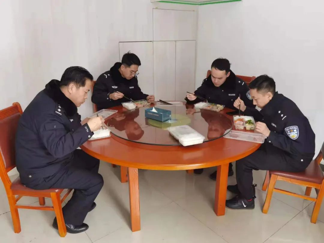 民警辅警们聚在一起吃上了热乎的年夜饭