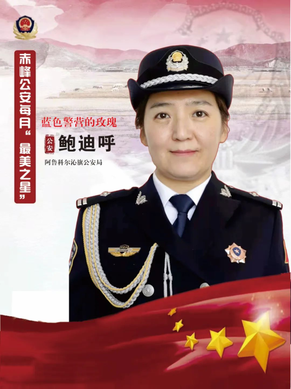 发现最美、弘扬最美、争做最美、学习最美!为宣扬典型、鼓舞士气、激发干劲,按照内蒙古自治区公安厅指示精神和市公安局党委部署要求,全市公安机关将组织开展每月“最美之星”事迹展播活动。从各地各部门推荐的赤峰市第六届“我最喜爱的人民警察”暨全市公安机关“最美民警”“最美辅警”候选人中选取2-4人,将个人事迹梳理汇总,每月通过“赤峰公安”微信公众号进行宣传展播,敬请关注。 本月推出两名“最美之星”:阿鲁科尔沁旗公安局情报指挥中心主任鲍迪呼、阿鲁科尔沁旗公安局政治工作办公室新闻宣传中心副主任于世波。