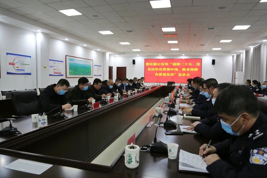3月7日下午,敖汉旗公安局召开“迎接党的二十大、优化法治化营商环境、服务保障高质量发展”大讨论活动恳谈会。会议邀请兴远建筑公司、金陶公司、沙漠之花、东大品证牧业、牧原公司、万家菌业、华海酒业、星斗香油、惠隆杂粮及桂柳牧业等10家企业负责人参加会议,公安局领导班子成员及相关部门负责人参加会议。