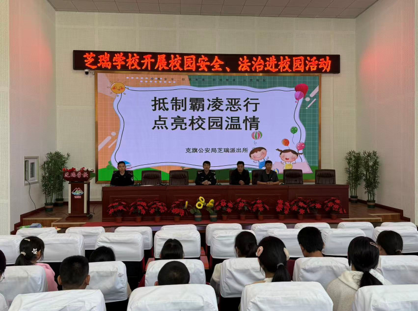 为进一步增强青少年的法治观念,预防和减少校园欺凌事件的发生,营造安全、和谐、文明的校园环境,近日,克旗公安局芝瑞派出所携手芝司法所、法院,深入辖区中小学,联合开展了以“抵制霸凌恶行,点亮校园温情”为主题的校园安全与法治教育专题活动。
