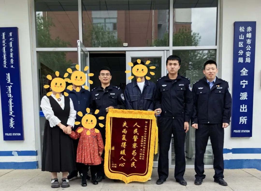 5月26日,像王大爷一样,王女士一家三口也来到全宁派出所,同样也是送锦旗,就连锦旗赠语也是一模一样。不同的是王女士是因为乘坐出租车从喀喇沁旗回家途中,不慎将手机遗失在出租车后座,几经寻找无果后,选择报警求助。在派出所民警耐心查看监控录像、多方联系下,成功将手机找回。第二天一大早,王女士一家人便来到派出所向民警赠送锦旗表达诚挚谢意。