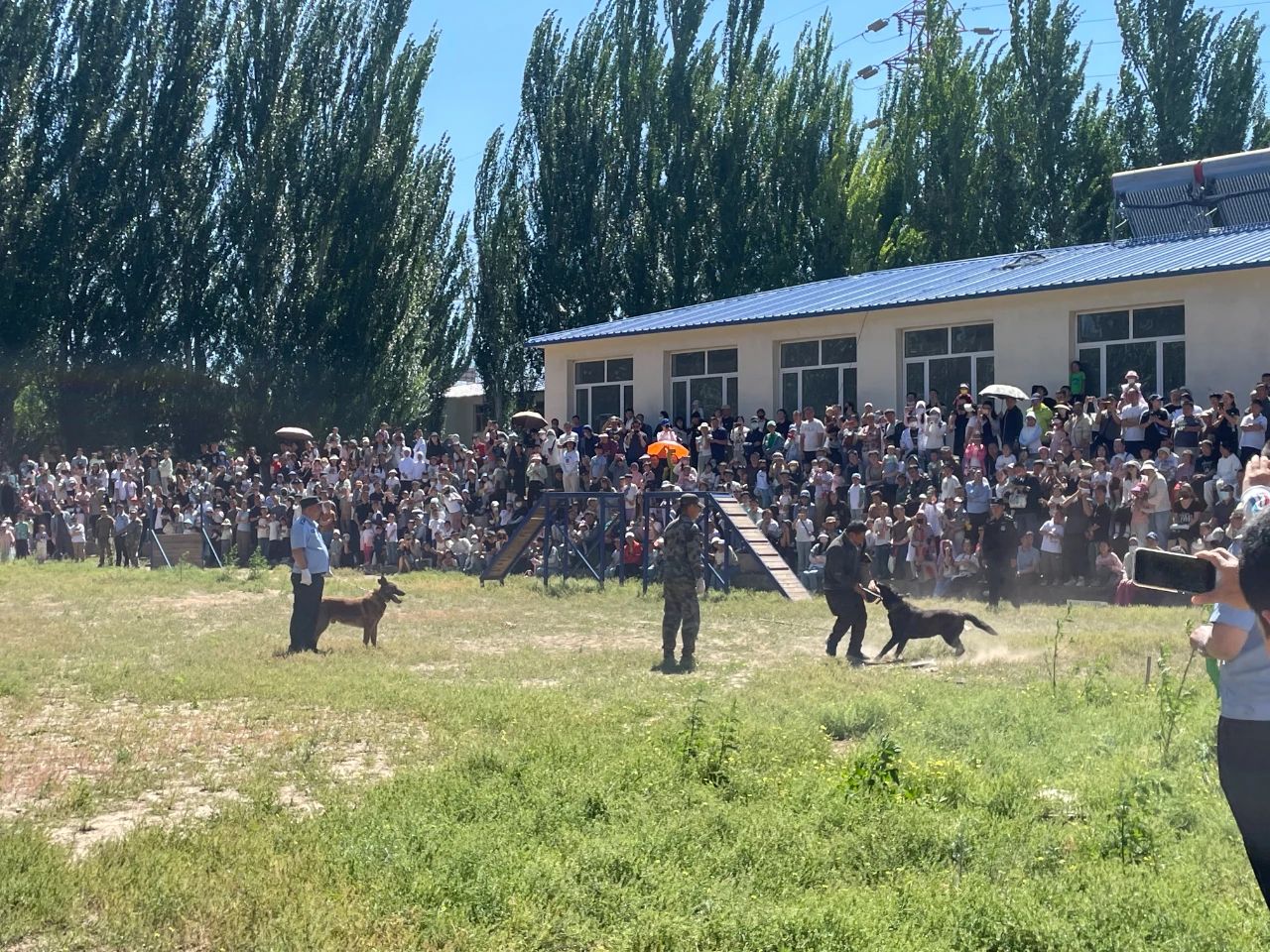 紧接着,警犬训导员带领警犬开展了紧张刺激的表演活动,分别是警犬服从科目、警犬搜捕科目和警犬搜毒搜爆科目等。警犬们的精彩表演赢得了阵阵掌声与欢呼。