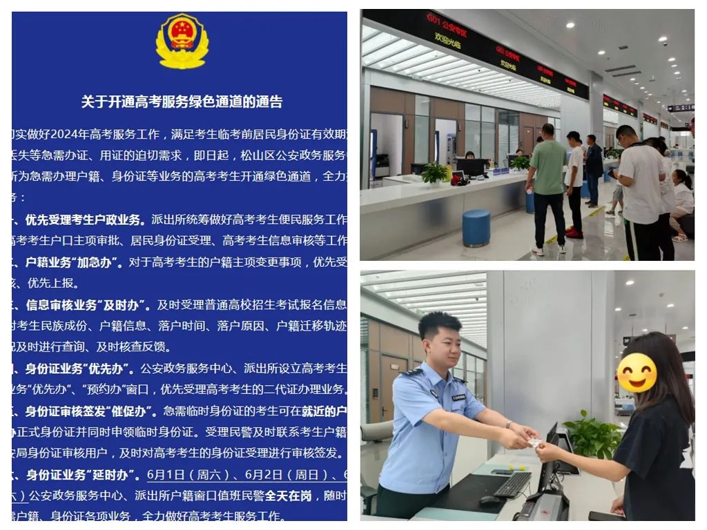 松山区公安分局政务服务中心及派出所户籍窗口积极配合教育部门做好考生身份审查工作,对涉及高招考生的户口迁移、变更民族成份的,严格审核把关,坚决杜绝利用非正常户口迁移和变更民族成份投机高考的行为,一经发现,严厉查处,严格追究相关人员的责任。设立专门的高考便民“绿色通道”,优先受理考生所需身份证办理的申请,优先为考生采集人像信息,优先上传制作,确保身份证能及时发放到广大考生手里。